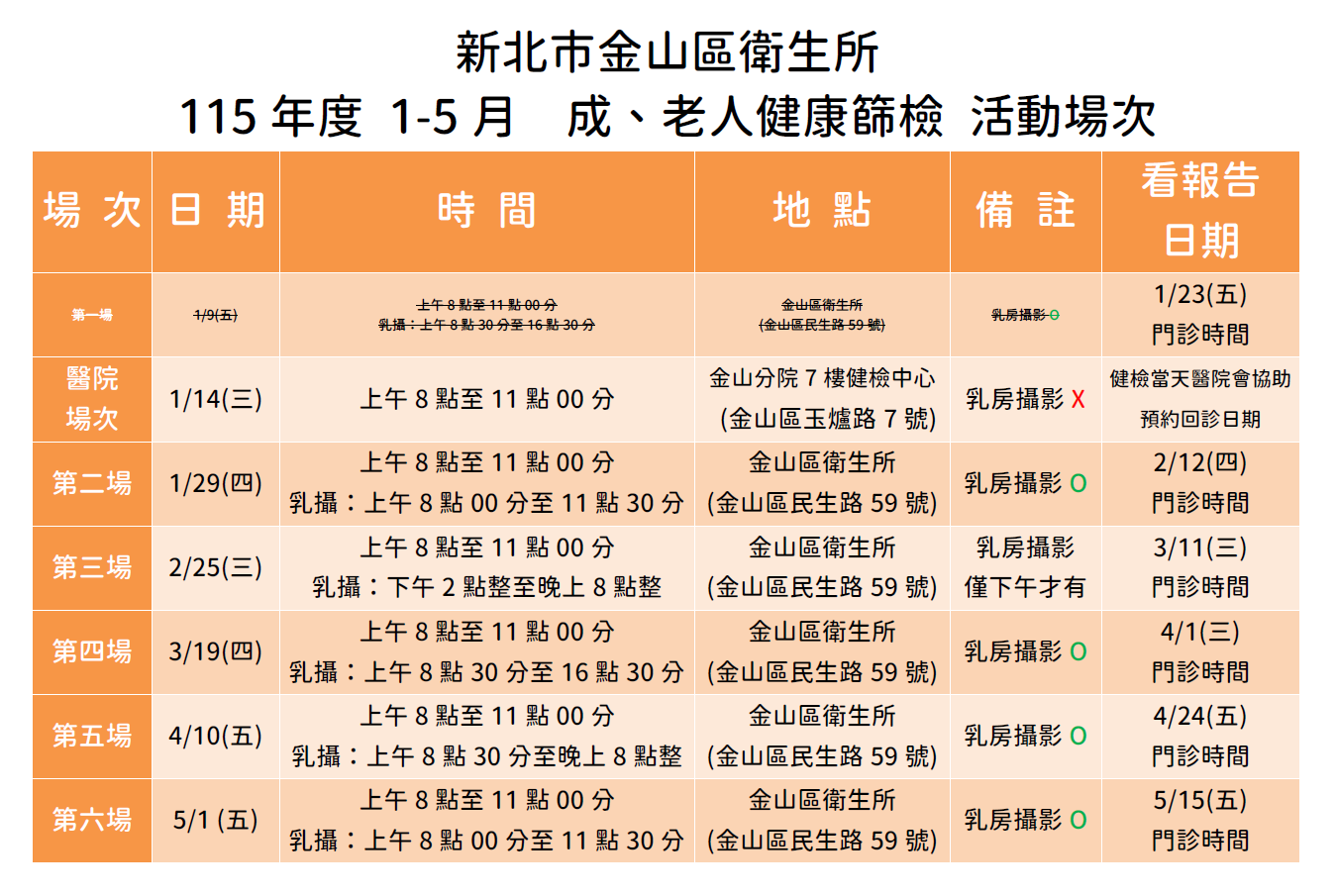 新增金山分院健檢場次活動((114.12.17更新
