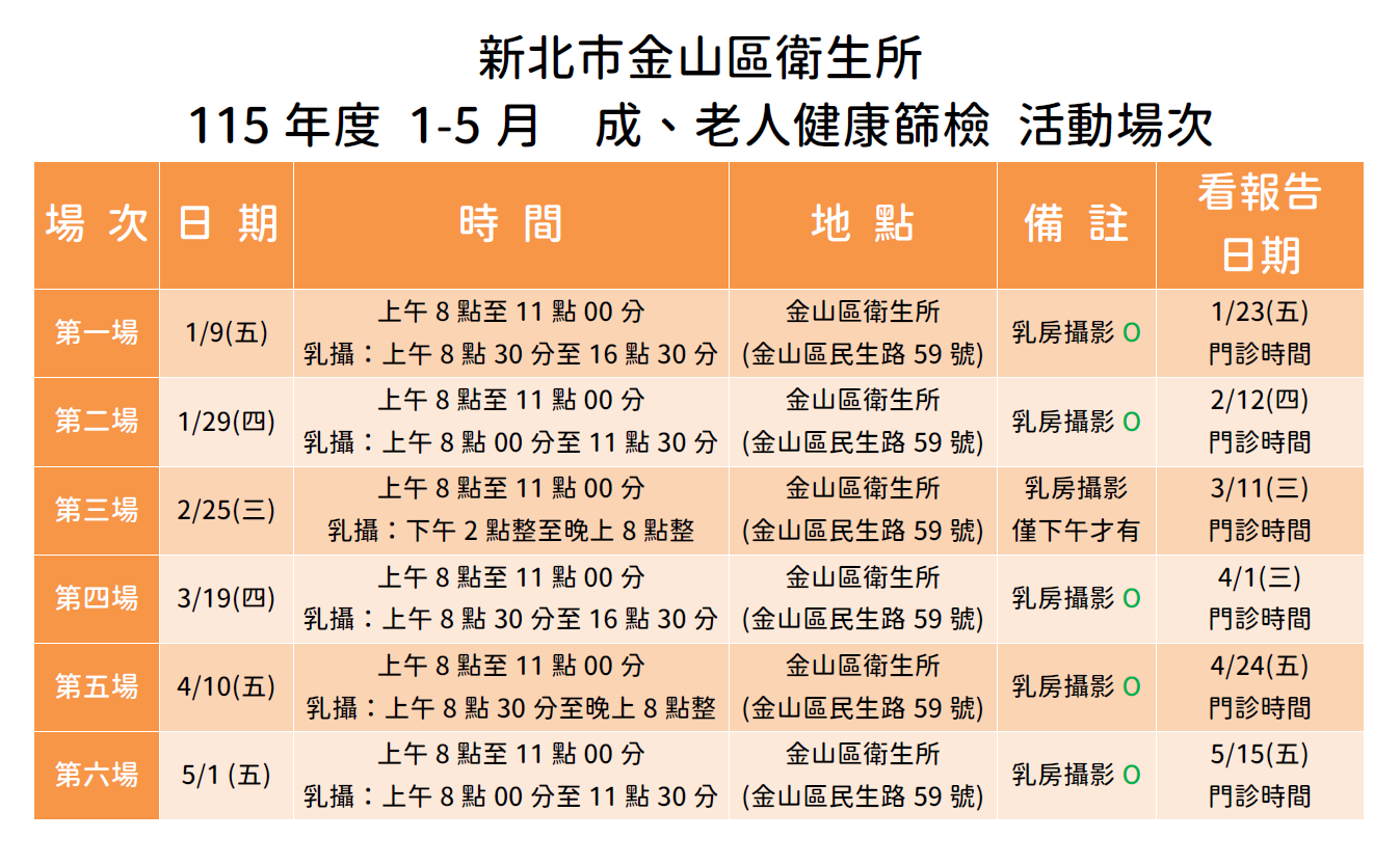 熱騰騰的115年度1月至5月,免費健檢活動日期出爐囉~好康道相報,歡迎符合資格的民眾一同參與!!